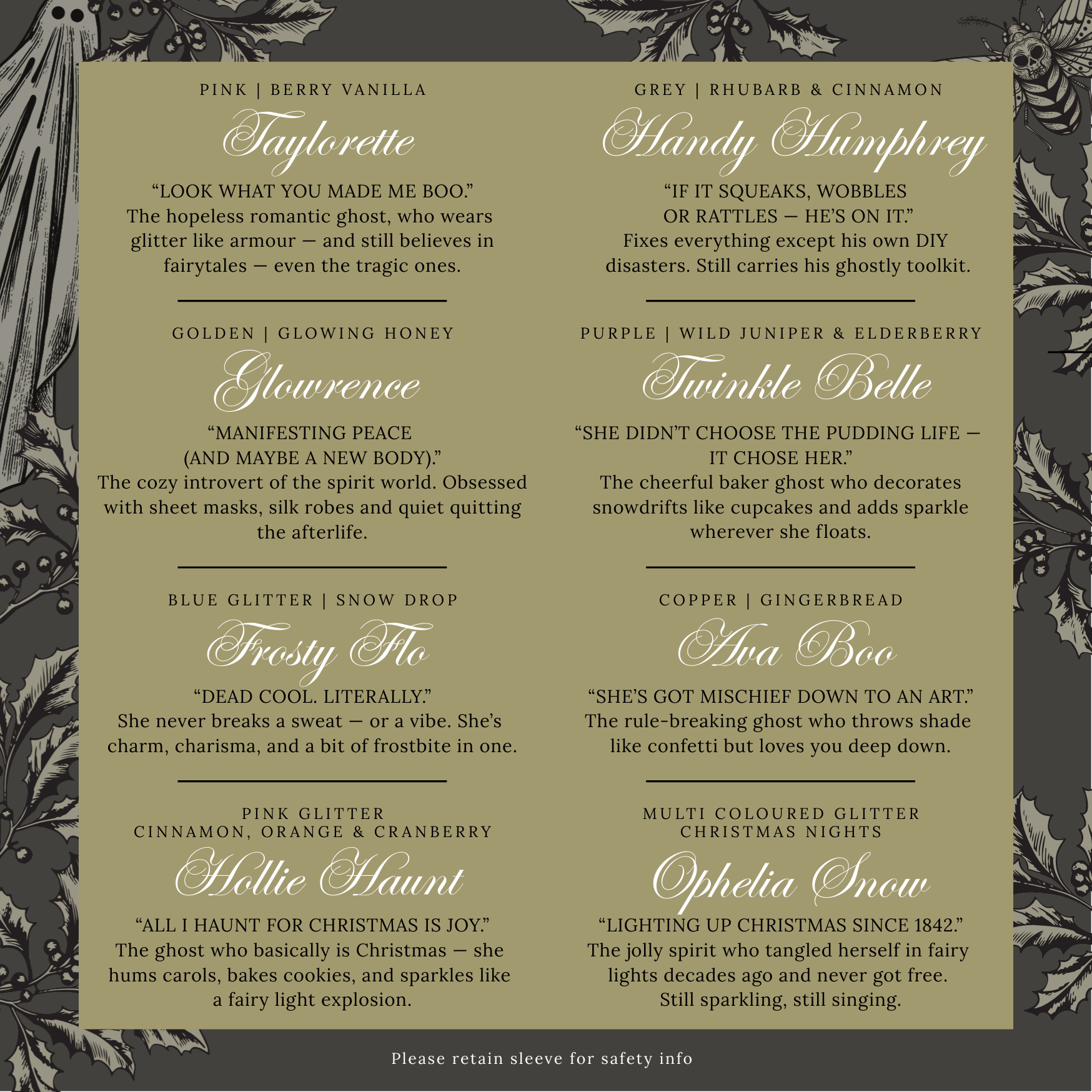 The gift box comes with all 8 ghosts in the family, and also contains a summary card with their personalities